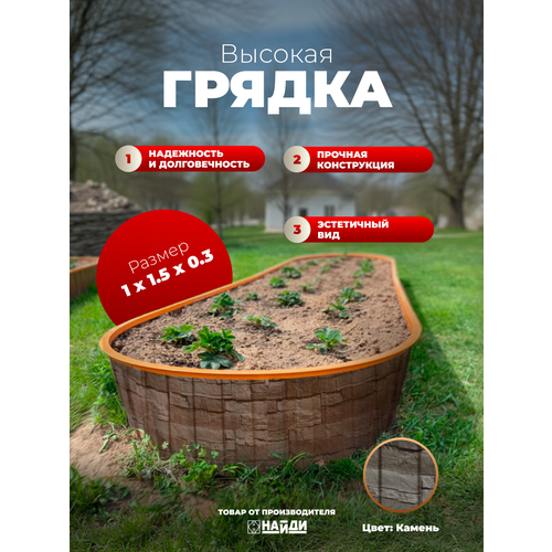 Грядка садовая, клумба НАЙДИ 1,5 м. металлическая (1500*1000*300), цвет камень