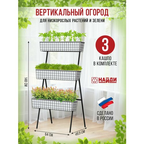 Вертикальная грядка НАЙДИ фитомодуль 3 кашпо Черный муар, металлическая