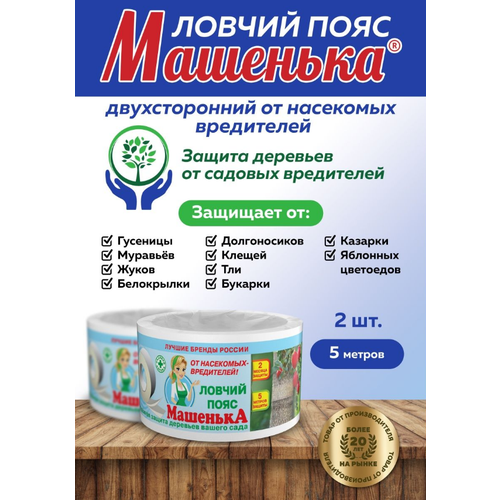 Комплект Ловчий пояс Машенька двухсторонний от насекомых вредителей 5м , 2 штуки