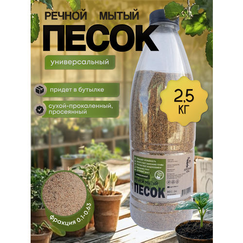 Песок речной промытый 2,5 кг , прокаленный, просеянный, дренаж для грунта и рассады