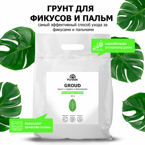 Грунт (земля) для фикусов и пальм Пуршат. С торфом и биогумусом для активного роста и восстановления растений (Purshat) 10 л