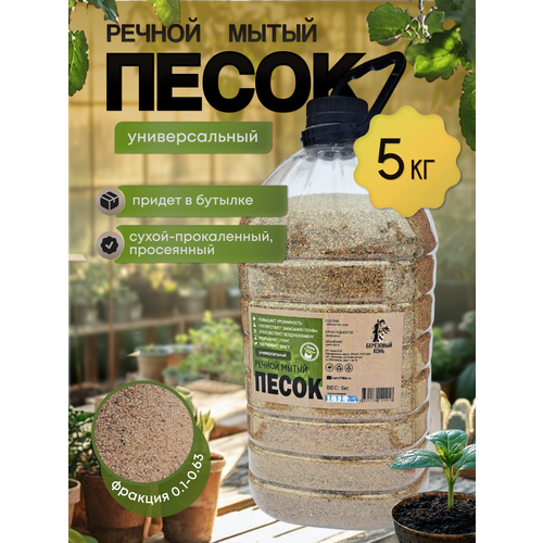Песок речной промытый 5 кг , прокаленный, просеянный, дренаж для грунта и рассады