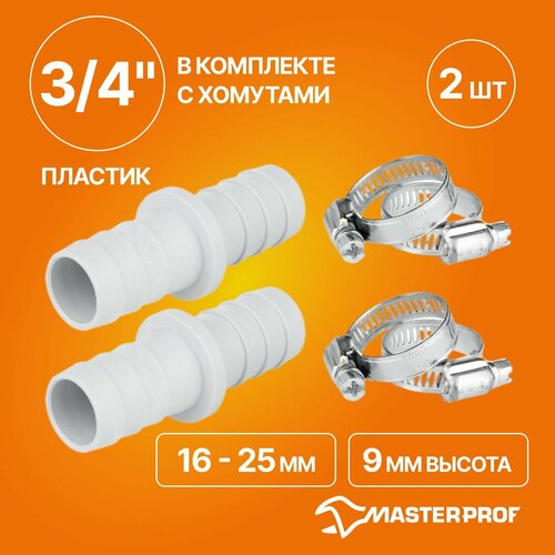 Соединитель поливочных шлангов 3/4" (пластик) в комплекте с хомутами, 2 шт.