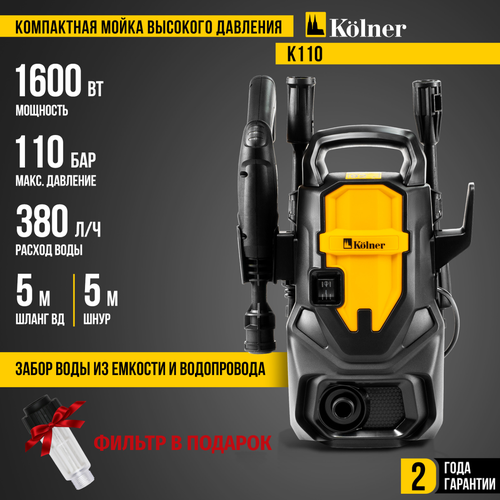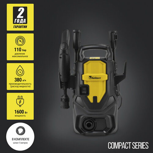 Kolner Мойка высокого давления Kolner K110, 110/70 Бар, 1600 Вт, 380 л/ч, метал. помпа, шланг 5 м