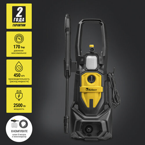 Kolner Мойка высокого давления Kolner K170 LUX, 170/120 Бар, 2500 Вт, 450 л/ч, метал. помпа