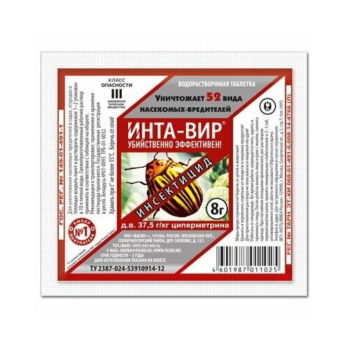 Интавир. Водорастворимая таблетка для личных ЛПХ от насекомых-вредителей. 2 упаковки.