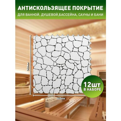 Коврик антискользящий для ванны, бассейна, сауны, бани - Aqua Stone, 12 модулей