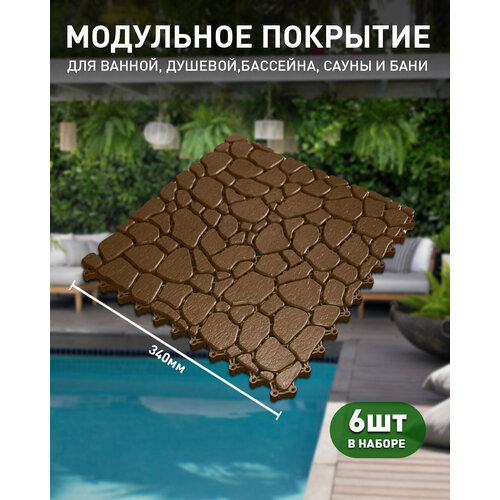 Коврик для ванны, бассейна, сауны, бани антискользящий, Aqua Stone, 6 модулей