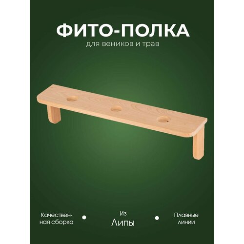 Деревянная настенная фито полка с тремя отверстиями Woodson для хранения традиционных банных веников и ароматических сборов целебных трав в бане и сауне, изготовлена из массива липы