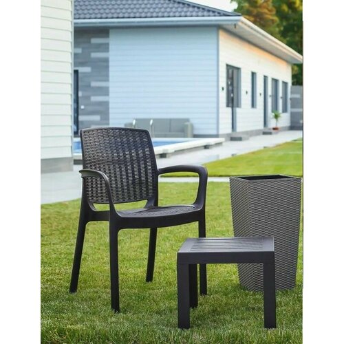 Комплект из 2-х кресел Терраса Люкс Мия, серый/антрацит, плетение из искусственного ротанга и алюминия