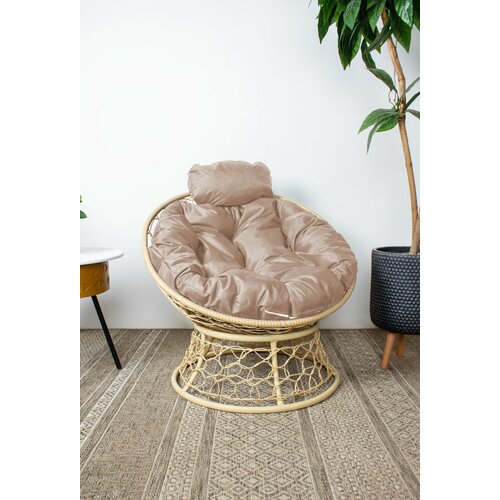 Кресло папасан мини с ротангом бежевое, бежевая подушка