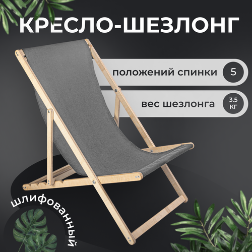 Цены на Кресло-шезлонг с подлокотниками для дома, для дачи, на пляж и пикник складной с серой тканью без шлифовки бежевый в г. Санкт-Петербург