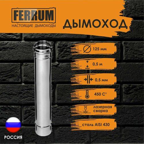 Дымоход 0.5 м (430/ 0,5) Ф125 FERRUM