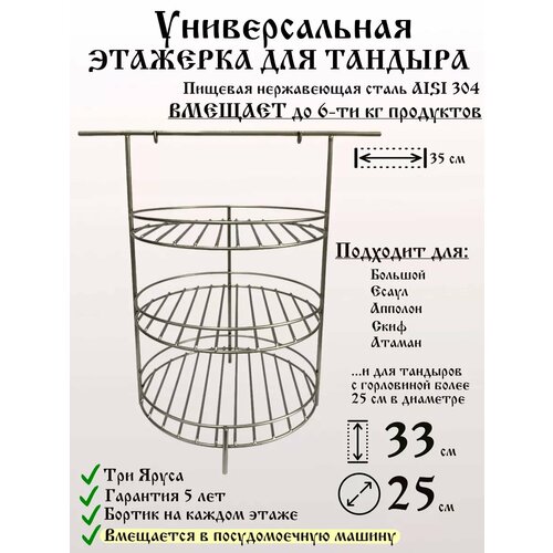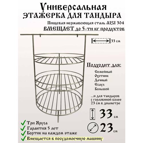 Этажерка для тандыра 3-х ярусная средняя на крючках с бортами (Аполлон, Есаул, Александр и др.)
