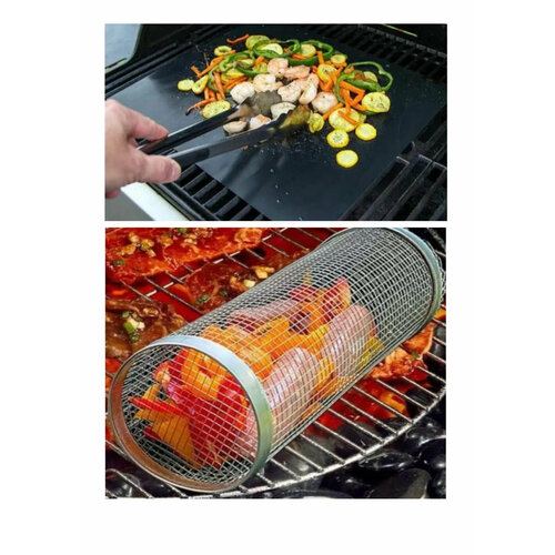Набор для гриля и барбекю: Антипригарный Коврик и Корзина из нержавеющей стали