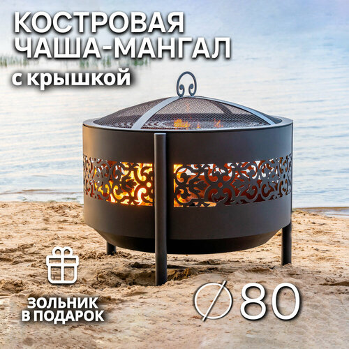 Костровая чаша Ажурная диаметр 80 см с зольником и крышкой искрогасителем, на трубчатых ножках / FIRE-HOUSE