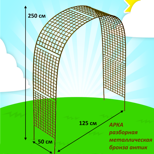 Арка сетка разборная металлическая 250х125х50 см d16 бронза антик
