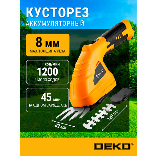 Кусторез DEKO DKGS8, с двусторонним ножом, Li-Ion аккумулятор