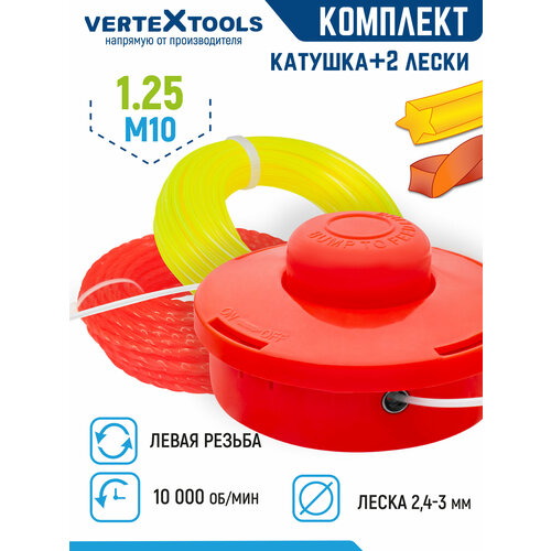 Катушка для триммера VertexTools головка T003 левая резьба M10x1.25 леска 2,4 - 3 мм