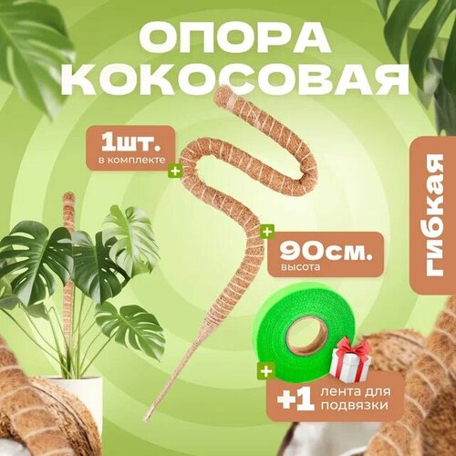 Кокосовая опора для растений гибкая, Декоративная опора для вьющихся комнатных растений 90 см, 1 шт