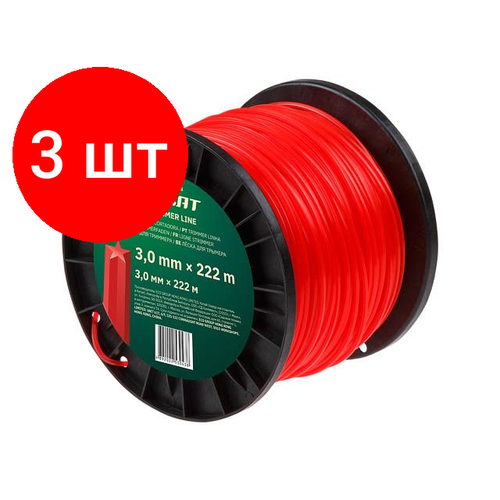 Комплект 3 штук, Леска ф 3.0 мм х 222 м "звездочка" волат (53040-04)