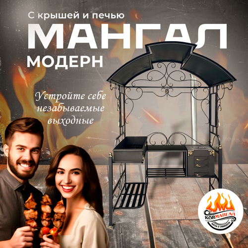 Мангал для дачи с крышей Kovmangal Модерн 220 х 150 х 105 см