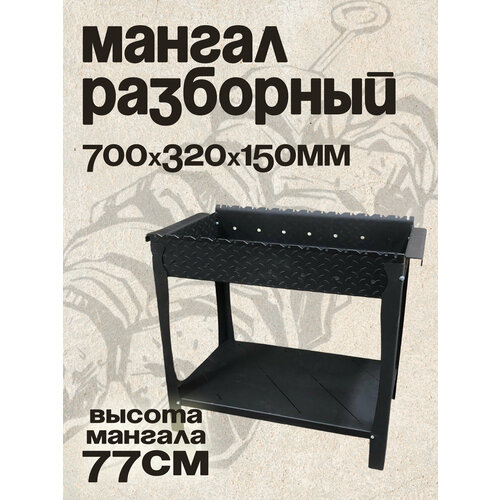 Мангал разборный, сталь 5мм, 70х32х15 см, 13 пазов под шампуры