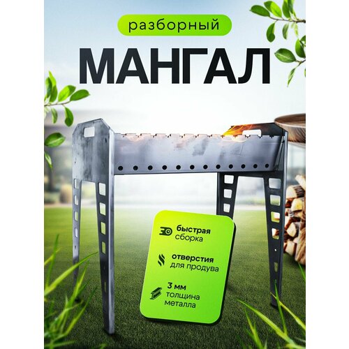 Мангал из нержавеющей стали 60х60х36см, для шашлыка, складной, туристический, переносной, разборный