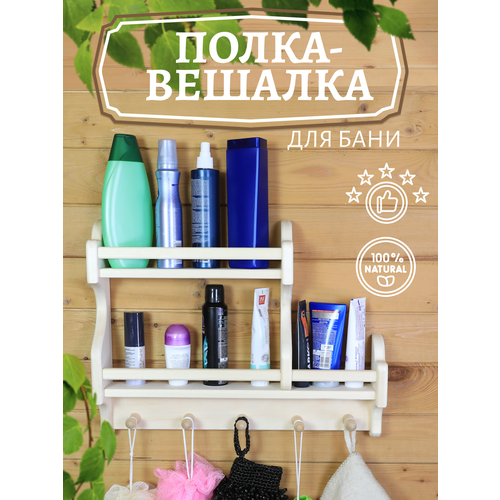 Полка-вешалка "Для бань", для бани, липа, 38х50х9 см, бежевая