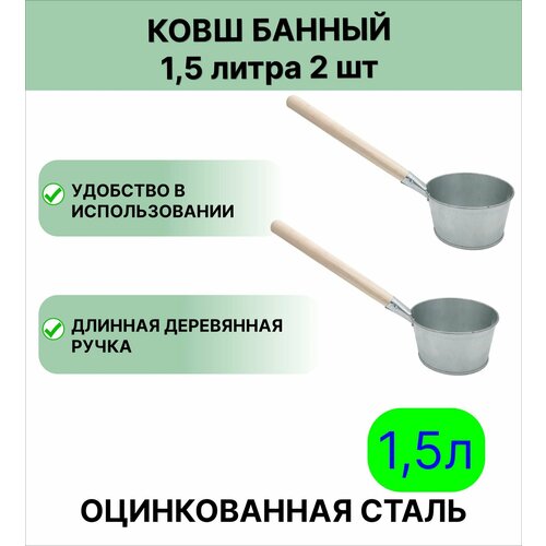 Ковш для бани 1,5 л набор 2 штуки, оцинкованный