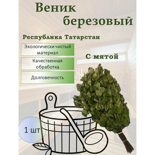 Веник для бани берёзовый с мятой — ароматный, мягкий, с целебными свойствами (1 шт)