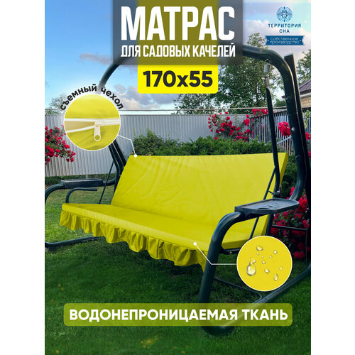 Матрас для садовых качелей 170х55 см. Цвет: Желтый. Водонепроницаемый съемный чехол.