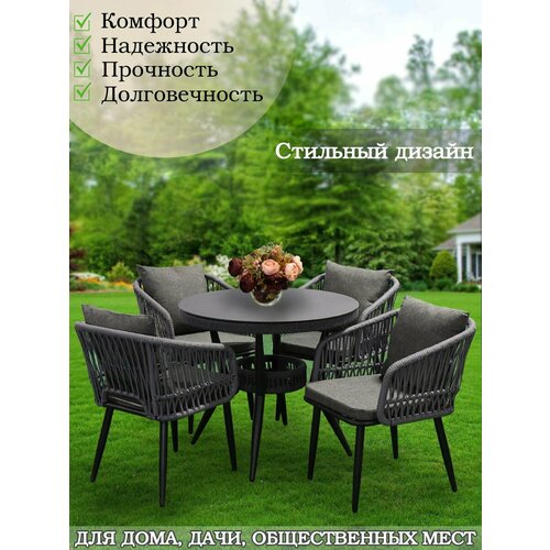 Мебель садовая Green Days, Венеция, графит, стол, 90х90х75 см, 4 кресла, подушка серая, 150 кг