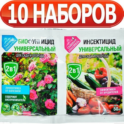 10 наборов Универсальный для сада и огорода 2в1 биофунгицид 10г + инсектицид 2мл для профилактики и защиты от болезней и вредителей Садовый спасатель