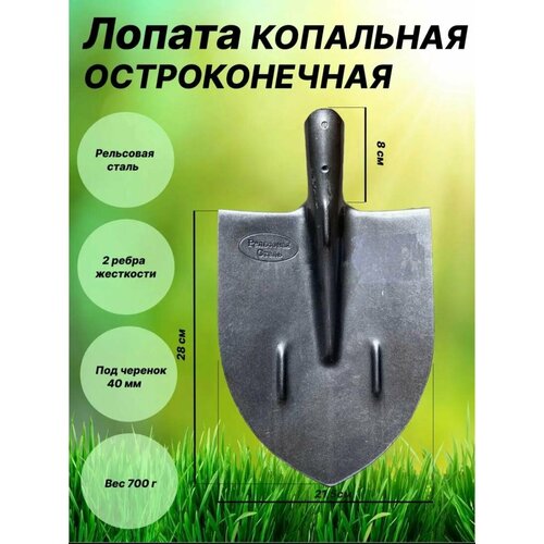 Лопата штыковая, остроконечная из рельсовой стали, без черенка