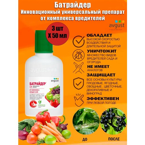 Инновационный универсальный препарат Батрайдер Август от комплекса вредителей, флакон 50 мл