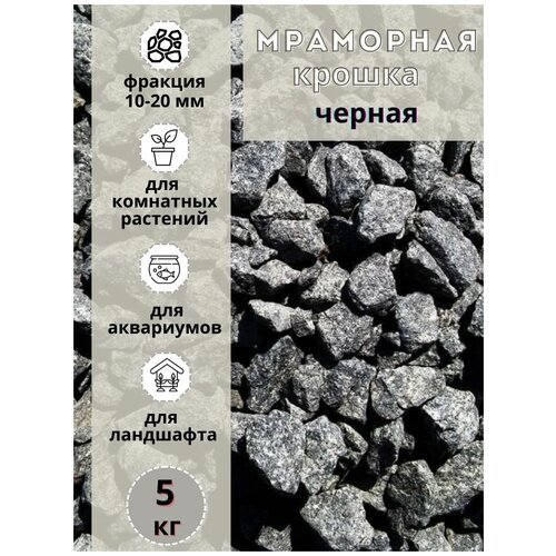 Мраморная крошка фракция 10-20мм черная (5кг) Грунт натуральный для комнатных и садовых растений