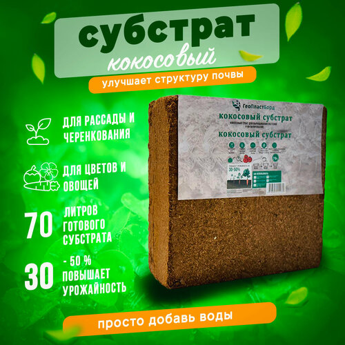 Кокосовый субстрат для растений ГеоПластБорд, брикет 70 литров