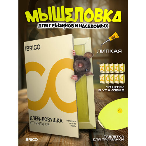 Мышеловки IBRICO клеевые, для помещений, картонные, желтые, 10шт