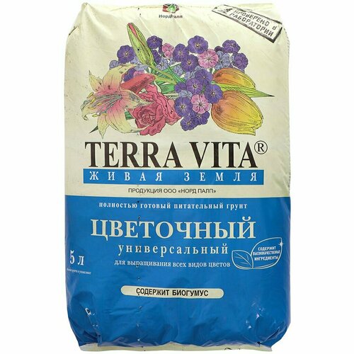Грунт Живая земля, для цветов, 5 л, Норд Палп