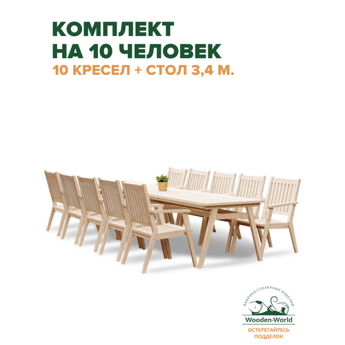 Комплект садовой мебели из массива дерева (стол 3,4м, 10 кресел) на 10 человек