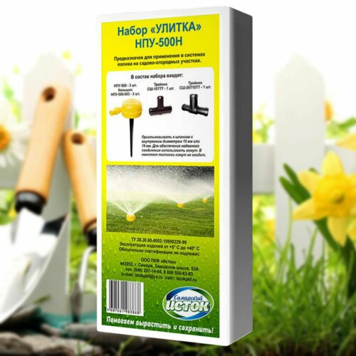 желтый, черныйНасадка для полива универсальная НПУ-500 "Улитка" предназначена для применения в системах полива на садово-огородных участках.