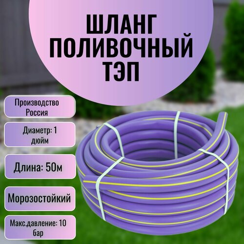 Шланг поливочный 1" 50м, резиновый ТЭП, морозостойкий, армированный, трёхслойный