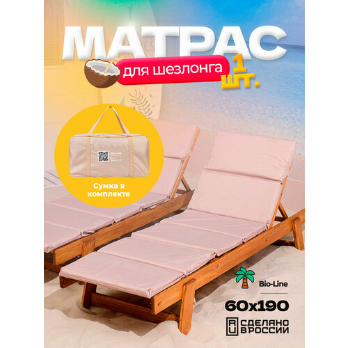 Матрас для шезлонга 60х190 см в сумке пляжной, водонепроницаемый, на резинке, оксфорд 600d, беж