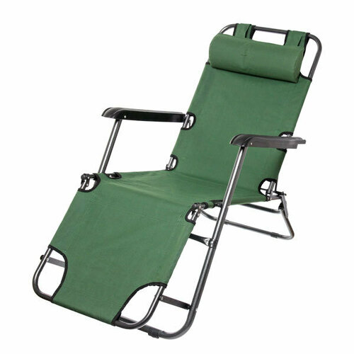 Шезлонг (раскладушка) 153*60*79см "Комфорт" с подголовником, 2 положения, зеленый ДоброСад