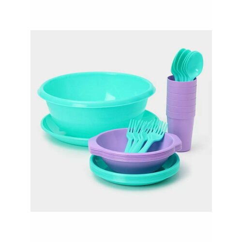 Набор посуды для пикника на 6 персон, 52 предмета, цвет микс фиолетовый, микс