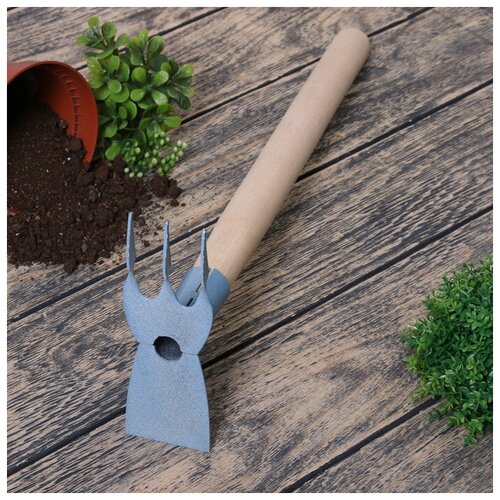 Мотыжка комбинированная, длина 38 см, 3 зубца, деревянная ручка, цвет микс