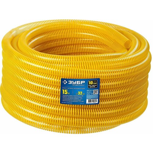 ЗУБР Шланг напорно-всасывающий со спиралью ПВХ, 10 атм, 32мм х 15м