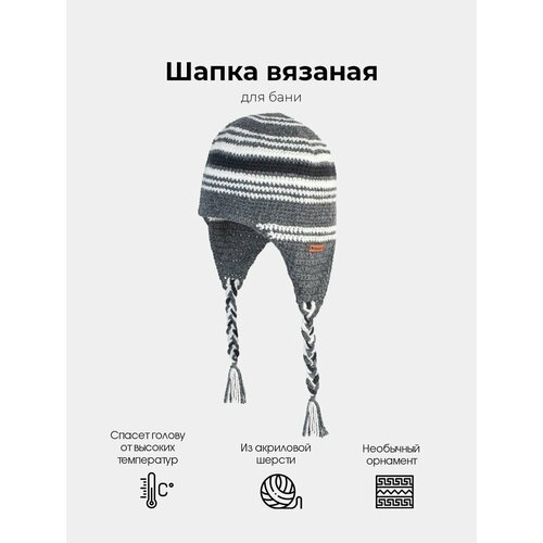 Шапка вязаная для бани Woodson Viking, серая 2 косички