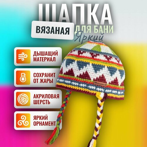 Шапка вязаная для бани Woodson Woodson Кids , орнамент,2 косички, акриловая шерсть
